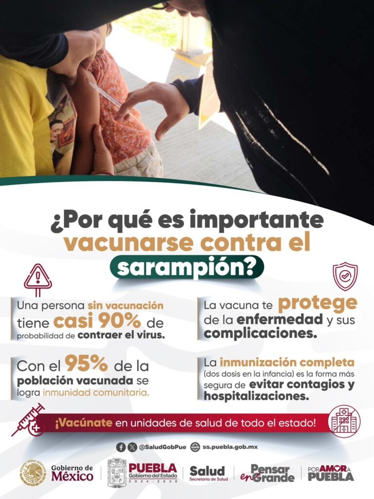 Ante la detección de dos casos positivos de sarampión en la capital de Puebla, el Gobierno del Estado, a través de la Secretaría de Salud, intensificó la campaña de vacunación en todas sus unidades médicas.