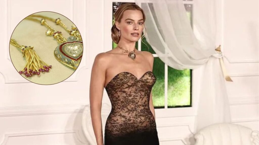 En cuanto al estilismo, fue obra de Andrew Mukamal, quien ha acompañado a Robbie en la construcción de looks que dialogan directamente con sus personajes. En esta ocasión, los accesorios fueron clave: pendientes de diamantes de 38 quilates de Lorraine Schwartz, un anillo vintage de estilo eduardiano y, como pieza central, la histórica gargantilla de Cartier.