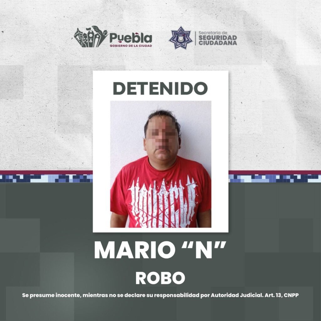 Las autoridades, quienes también recuperaron el teléfono y el dinero de la afectada, hicieron un llamado a la ciudadanía para que, en caso de identificar al varón como partícipe de otros actos delictivos, lo denuncien formalmente ante la Fiscalía General del Estado de Puebla (FGE).