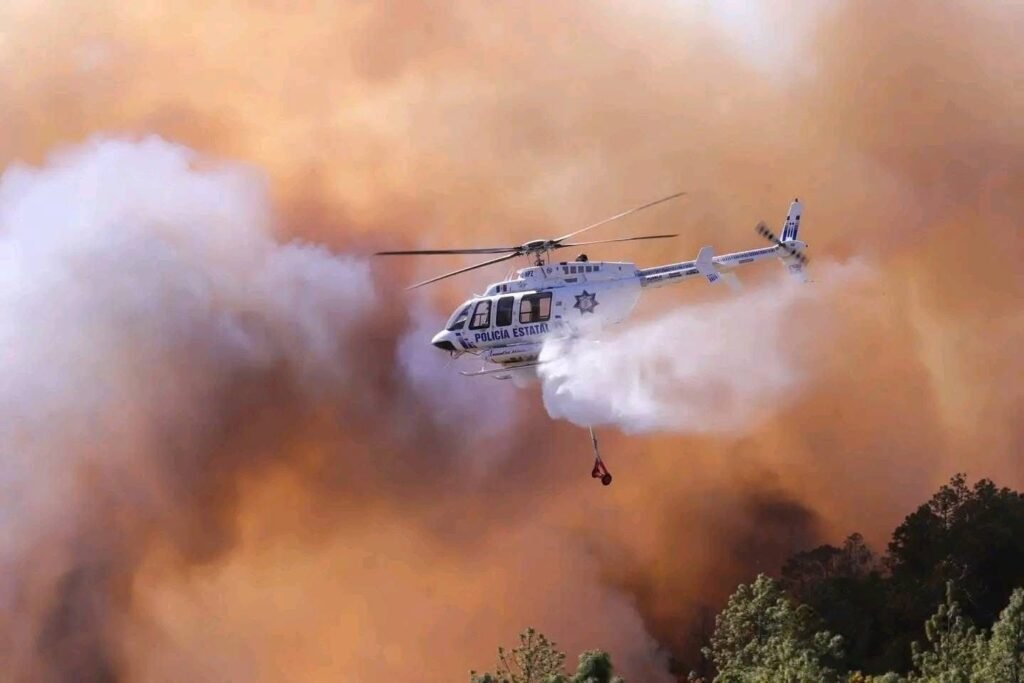 El helicóptero de la Secretaría de Seguridad Pública realiza vuelos constantes con el sistema de hidrante para sofocar el fuego, las labores han sido constantes, los brigadistas realizan turnos para no permitir que avance rápidamente el fuego, pero en algunos momentos el viento les juega en contra y evita que se mitigue por completo